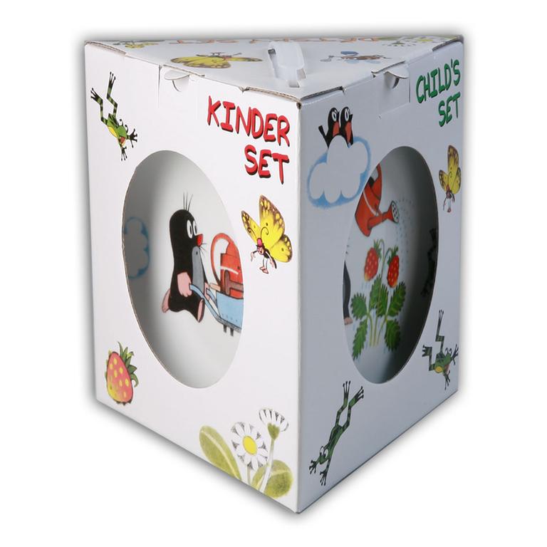 Detský porcelánový set obsahuje hrnček, misku, a tanier s obrázkovými motívmi krtka z populárneho večerníčka. Tradičná kvalita českého porcelánu. Každý produkt je zdravotne nezávadný a certifikovaný. Ľahké na detské užívanie. Je možné umývať v umývačke riadu..