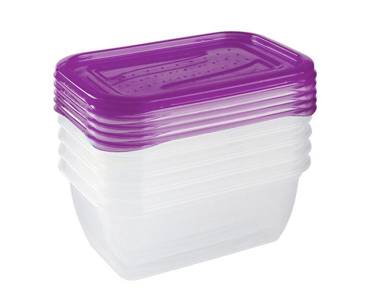 Praktická sada 5 ks dóz na potraviny Fresh & Freeze s vekom, objem 0,5 l. Svieži moderný dizajn, jednoduché otváranie. Vhodné na uchovávanie potravín, na obedy, desiate a pod. Vďaka týmto dózam uchováte potraviny dlhšie čerstvé. Vhodné tiež do mrazničky. Rozmery 15,5 x 10,5 x 6 cm. Farba číra s modrým viečkom.