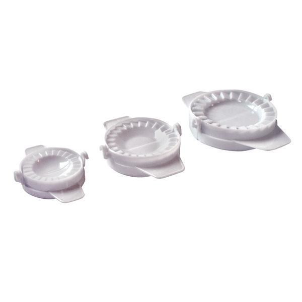 Pomôcka na tvorenie taštičiek. Vynikajúce na prípravu sladkých i slaných, pečených i varených taštičiek a plnených cestovín. Set 3 ks. Vyrobené z odolného plastu. Priemer 10 cm, 8 cm, 5,5 cm.