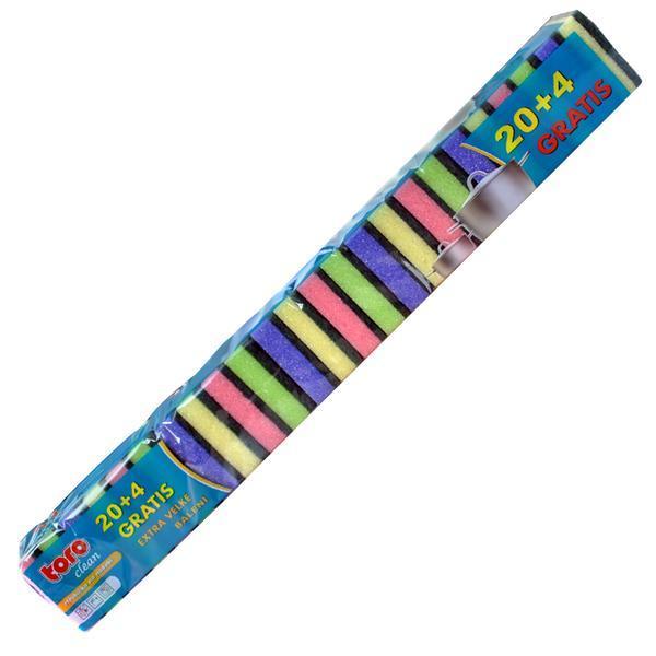 Hubka na riad má veľmi účinnú pevnú brúsnu vrstvu odolnú proti opotrebeniu. Vhodná na umývanie riadu. Balenie obsahuje 24 kusov v rôznych farbách. Rozmery 8 x 5,5 x 2,5 cm.
