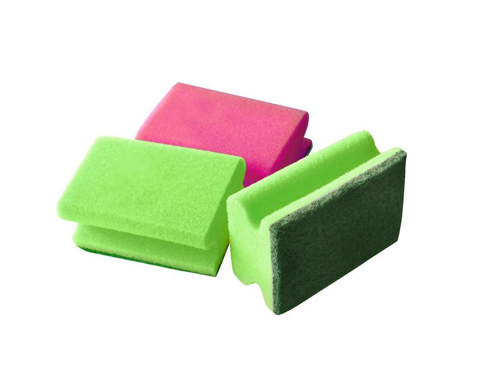 Hubka na riad má veľmi účinnu pevnú brúsnu vrstvu odolnú proti opotrebeniu. Vhodná na umývanie riadu. Balenie obsahuje 6 ks v zeleno-ružovej farbe. Rozmery 9 x 7 x 4 cm.