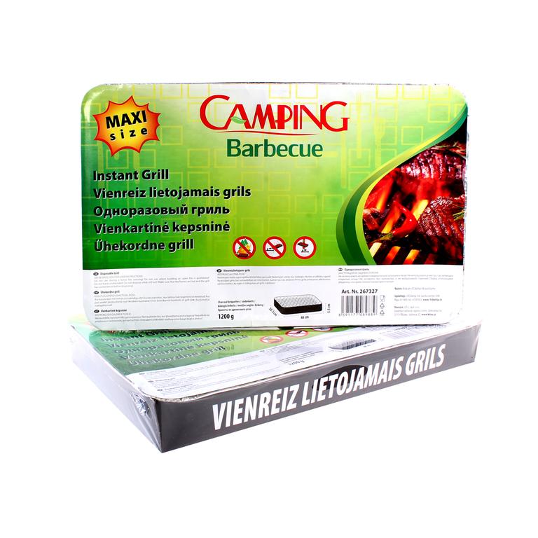 JJednorazový gril môžete vziať kamkoľvek so sebou. Je to veľmi jednoduché, stačí len zapáliť podpaľovací papier a nechať gril cca 20 minút rozpáliť. Potom môžete cca hodinu grilovať. Rozmery 48 x 30,5 x 5,5 cm, váha 1200 g. P>