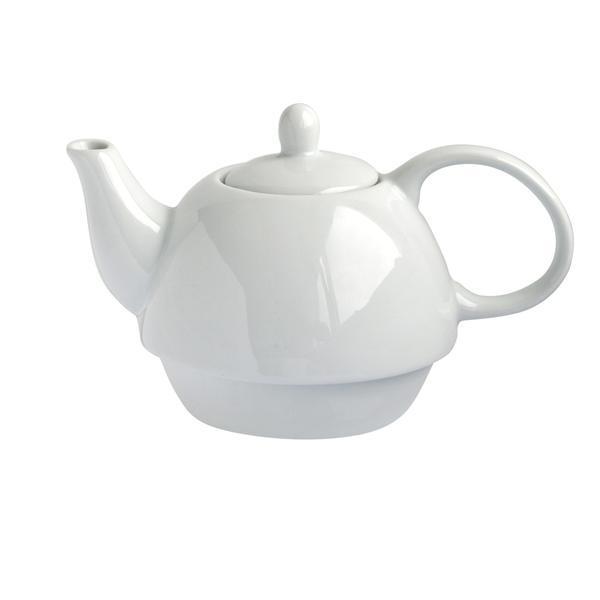 Porcelánová kanvička na čaj so šálkou - 2 v 1 na nalievanie hotového čaju či iného horúceho nápoja. Kanvička má objem 480 ml, šálku 320 ml. Farba biela.