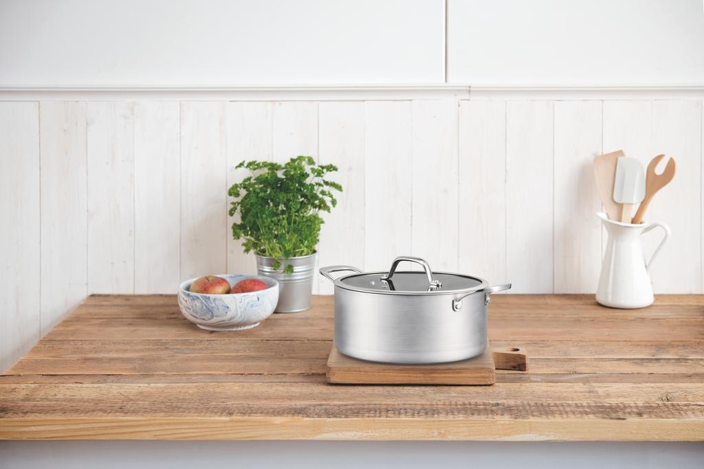 Kastról s pokrievkou Brabantia Technopro 24 cm, s objemom 4,5 l. Dvojvrstvové nepriľnavé vnútro kastróla sa ľahko čistí. Silná plne indukčná základňa zaistí lepšiu distribúciu tepla. Bezpečné nitované rukoväte sú z nerezovej ocele. Vonkajší povrch kastróla je matne šedý. Tento kastról je vhodný pre všetky zdroje tepla, má lisované hliníkové telo, pokrievky s odvzdušňovacím otvorom a elegantný dizajn.