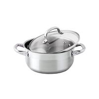 Kastról z nerezovej ocele 18/10, objem 1,3 l, priemer 16 cm, výška 7,5 cm, so sklenenou pokrievkou s otvorom pre odvod pary. Možnosť použitia na všetky typy spotrebičov vrátane indukcie, vhodný do umývačky riadu.