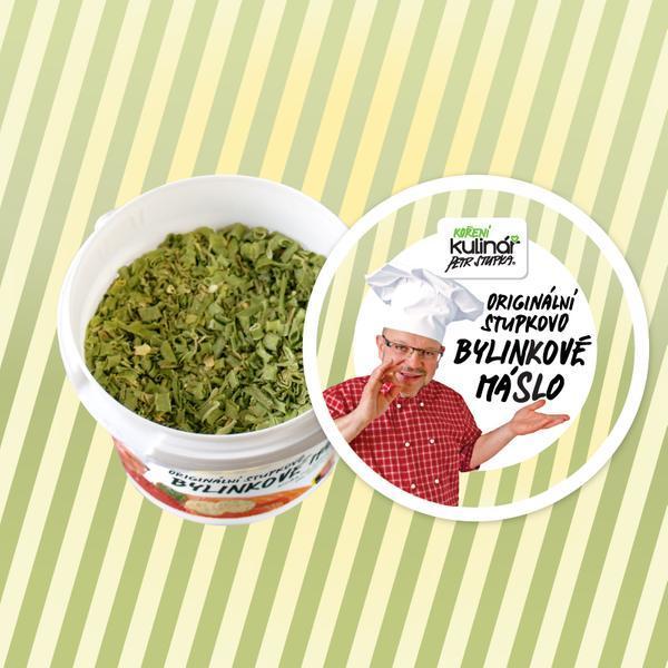 Korenie bylinkové maslo. Zmes na ochutenie masla, do marinád, dresingov a nátierok. Zloženie: cesnak sušený, pažítka, soľ morská max 15%, korenie biele, cibuľa sušená, petržlenový list, sušené byliny (oregano, tymian, rozmarín). Hmotnosť 60 g.