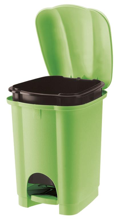 Plastový odpadkový kôš Carolina, objem 16 l, vnútorná nádoba s praktickým úchytom pre ľahšie vyprázdňovanie a čistenie. Má tiež nášľapný systém pre ľahšie otváranie. Rozmery 27,5 x 30,2 x 41,5 cm, farba zelená.
