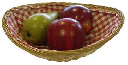 Veľmi pekný oválny košík z lúpaného prútia, ktorý je vo vnútri vystlaný kockovanou látkou (červeno-bielou). Košík je v prírodnej farbe. Možno použiť na servírovanie pečiva alebo ako dekoráciu. Rozmery 16 x 24 x 6,2 cm.