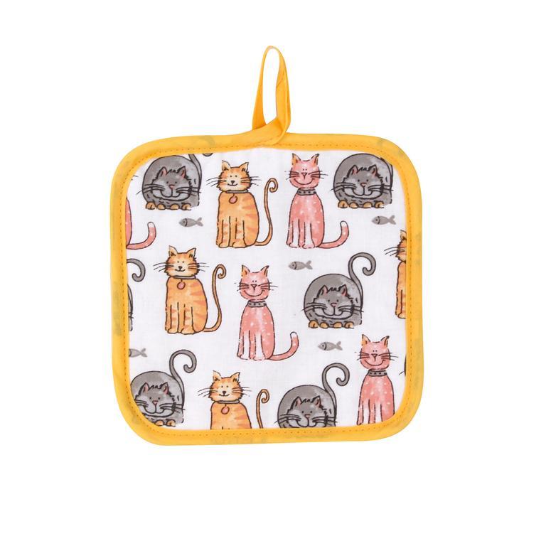 Podložka pod hrniec - štvorec, s krásnym motívom mačky alebo psa. Je vhodná na prenášanie horúceho riadu, ako podložka pod horúce hrnce alebo na zdvíhanie horúcej pokrievky. Rozmery 17 x 17 cm. Materiál - povrch: predná strana - 100% bavlna, zadná strana: 100% polyester; výplň: 65% bavlna, 35% polyester. Assort motívov - mačka alebo pes.
