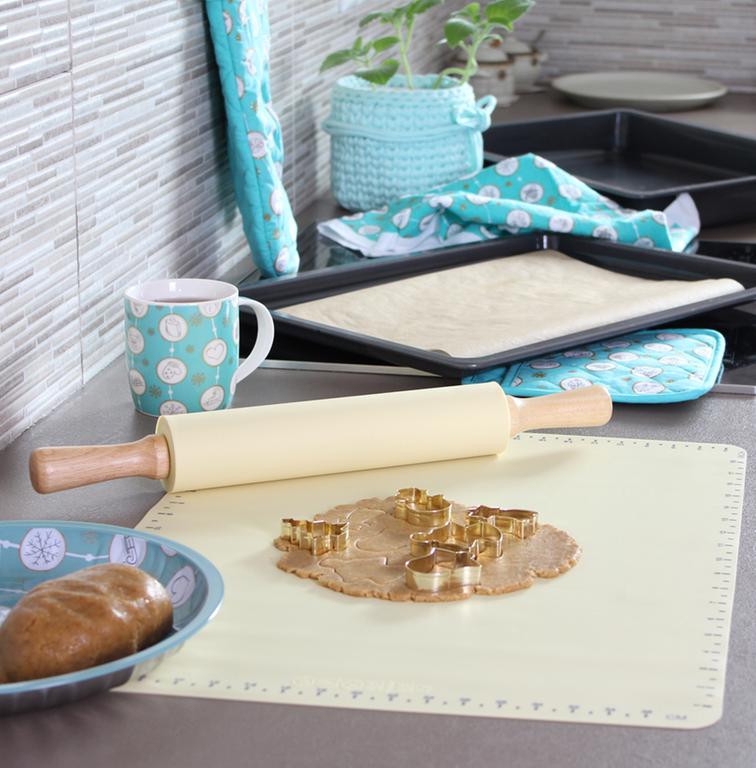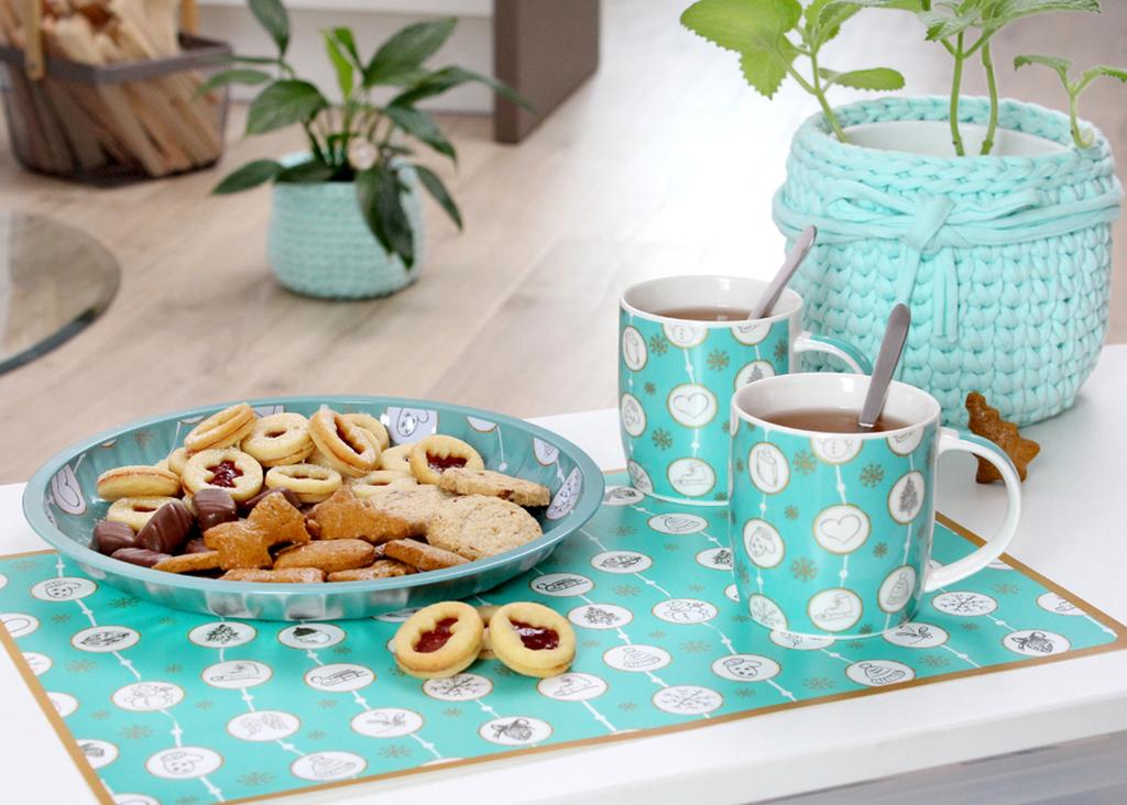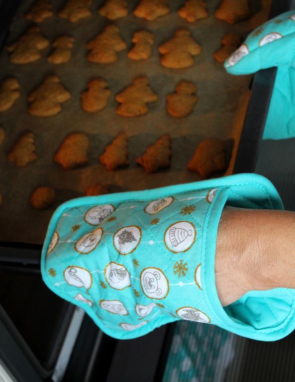 Malá vianočná chňapka tyrkysová z bavlny je vhodná na chytenie a prenášanie horúcich nádob, plechov z rozpálenej rúry alebo na zdvíhanie rozpálenej pokrievky. Rozmery 20 x 20 cm.