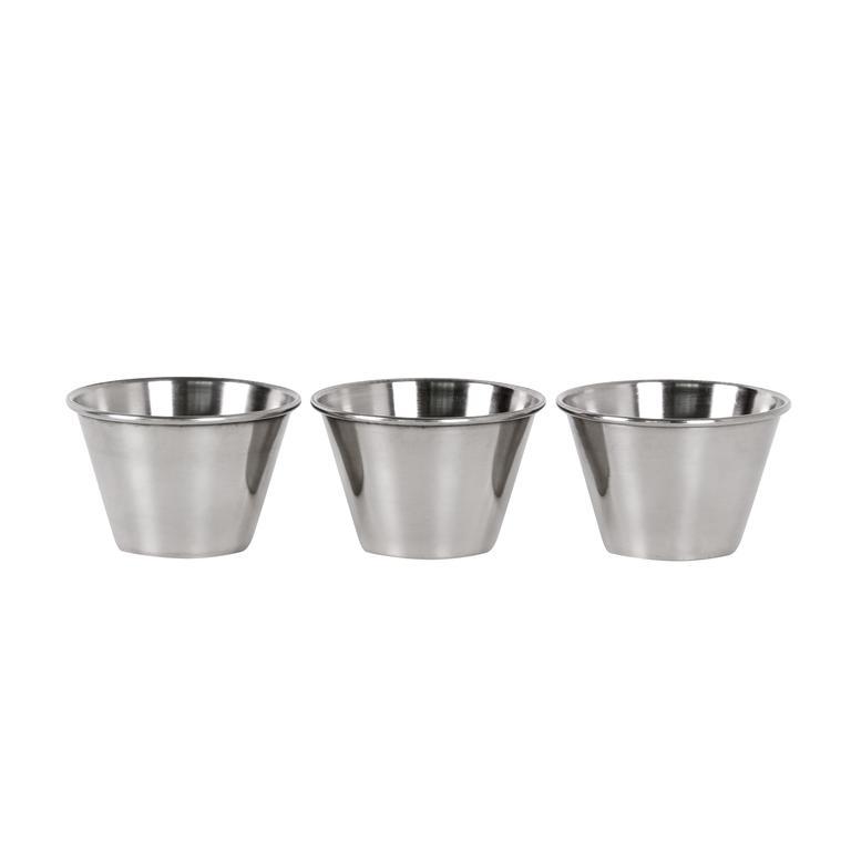 Set 3 ks nerezových mištičiek na omáčky a dipy. Priemer v hornej časti: 7 cm. Výška: 4, 5 cm.