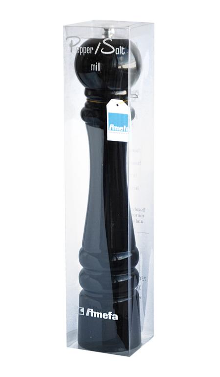 Mlynček na soľ a korenie 35 cm, materiál drevo. Skvele padne do ruky. Mlynček na korenie dodá Vášmu jedlu tú správnu výslednú chuť, chuti čerstvo namletej soli alebo korenia sa nič nevyrovná. Farba čierna
