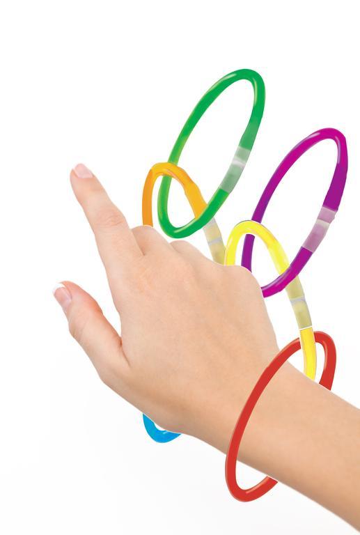 Svietiace náramky na každú párty. Náramok má priemer 5 mm a dĺžku 200 mm. Po jeho ohnutí dôjde k spojeniu látok vo vnútri a náramok niekoľko hodín svieti. Akonáhle dôjde k vyčerpaniu obsahu, náramok prestane svietiť a znovu sa už použiť nedá. V balení sú tiež spojky ku každému náramku. Nevhodné pre deti do 3 rokov. Balenie 15 ks.