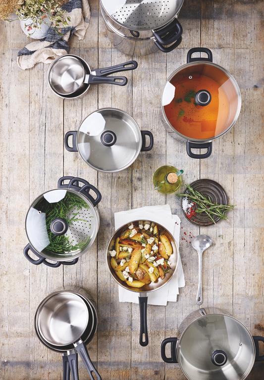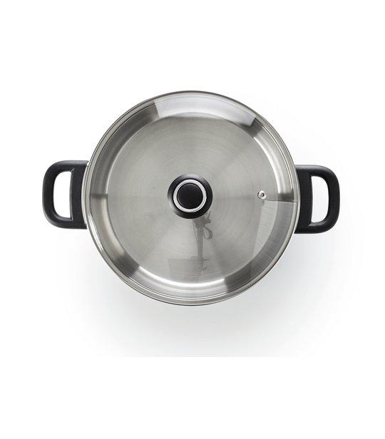 Nerezový kastról so sklenenou pokrievkou BEKA Polo je vhodným pomocníkom do všetkých domácnosti na prípravu Vašich pokrmov. Rýchlo sa zahrieva a udržiava optimálnu distribúciu tepla po celom hrnci, a to vďaka hermetického 3vrstvému sendvičovému dnu. Je vyrobený z odolnej nerezovej ocele 18/10 a v kombinácii s priehľadným skleneným vekom je neoddeliteľnou súčasťou každej domácnosti. Odvzdušňovací otvor vo veku umožní únik pary, zabraňuje prevarovaniu. Vhodné pre všetky varné dosky, vrátane indukcie, priemer hrnca je 24 cm a objem 5,3 l. Kastról je možné umývať v umývačke riadu, ale z dôvodu zachovania dlhšej životnosti použitého materiálu odporúčame šetrnejšie ručné umývanie. Pri príprave jedla používajte len tepelne odolné drevené, silikónové alebo nylonové kuchynské náčinie.