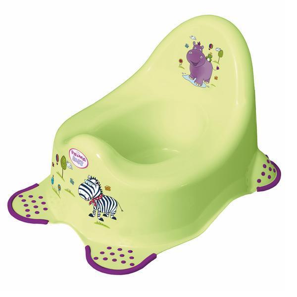 Nočník detský s anatomickým tvarovaním a vysokou opierkou, ktorá poskytuje dieťaťu pohodlné sedenie. Zvýšený tvar nočníka zabraňuje vyšplechnutiu jeho obsahu. Nočník je maximálne stabilný vďaka širokým podnožkám. Spodná strana s protišmykovou úpravou pre väčšie bezpečie vášho dieťaťa. Motív hrocha, farba zelená. Objem 1 l, rozmery 34,5 x 26 x 24 cm.