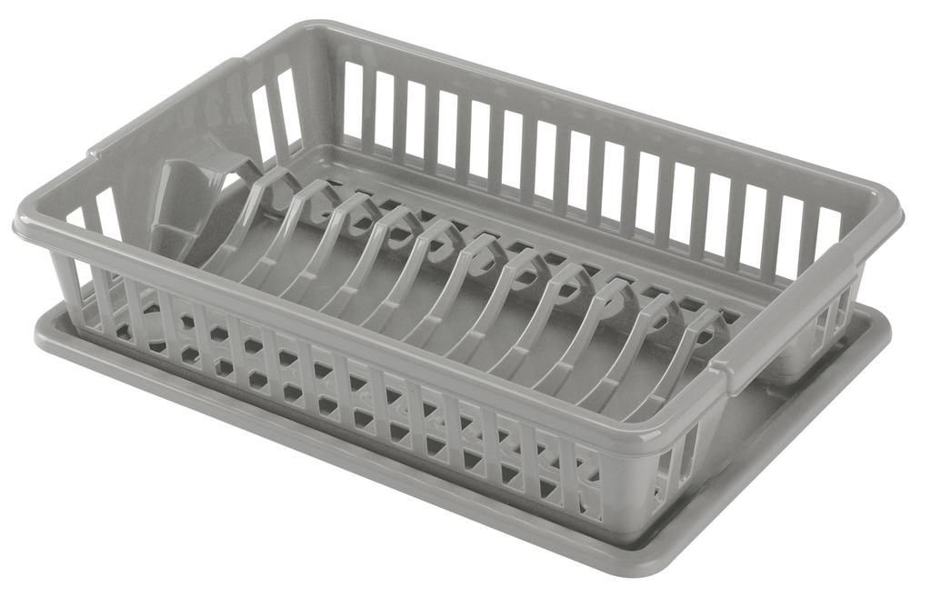 Plastový odkvapkávač s podnosom má dvanásť samostatných priehradiek na zachytenie tanierov. Ľahko sa udržiava a čistí, je vhodný do umývačky riadu. Rozmery 38 x 26 x 9 cm, rôzne farby.