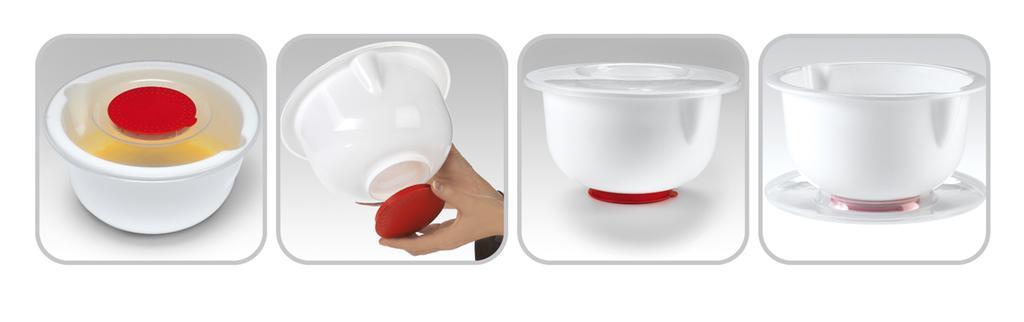 Šľahacia misa s krytom ochráni vašu kuchyňu pred znečistením pri príprave rôznych krémov, ciest atď. Táto misa vám uľahčí prácu pri varení. Unikátne riešené veko, ktoré môžete otvoriť dvoma spôsobmi - celé veko alebo iba jeho červenú vnútorná časť, ktorú potom môžete aplikovať na dno misy, aby sa vám pri šľahaní nekĺzala. Priemer 24 cm, výška 13,5 cm. P>