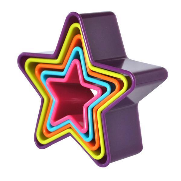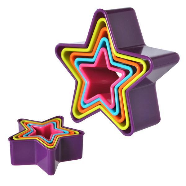 Plastové vykrajovače na cukrovinky v tvare hviezdy. V balení 5 ks - rôzne veľkosti. Assort farieb.