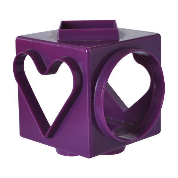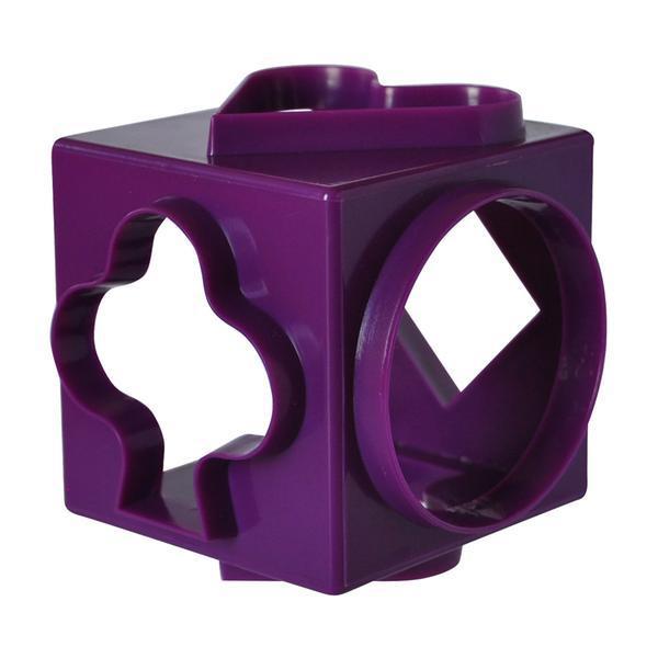 Plastové vykrajovače na cukrovinky v tvare kocky, každou ich stranou vykrojíte iný tvar - kruh, štvorec, kosoštvorec, srdce, 2 rôzne tvary stromu. Rozmery - 7,5 x 7,5 x 7,5 cm.