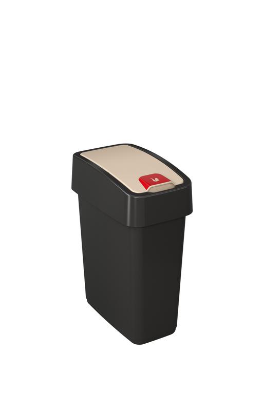 Moderný plastový odpadkový kôš vyrobený z kvalitného pevného plastu. Jednoduchý tvar, veko otvárateľné ľahkým stlačením. Vrchná časť je odnímateľná pre ľahké vysypanie odpadkov a jednoduchú manipuláciu s vreckom. Ľahko umývateľný. Objem 10 l, čierna farba.