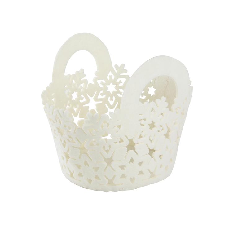 Vianočný okrúhly plstený košík je vhodný na výzdobu vášho domova počas Vianoc. Rozmery 15 x 15 x 14 cm, farba biela.