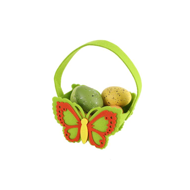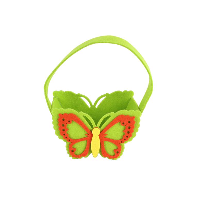 Plstený košík v tvare motýľa je vhodný na výzdobu vášho domova počas Veľkej noci. Do košíčka môžete vložiť vajíčka, umelé kuriatka či iné veľkonočné motívy a dekorácie. Rozmery 13 x 8 x 8 cm.