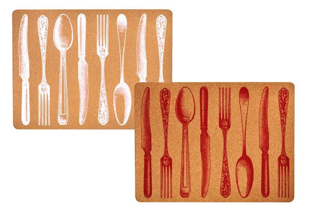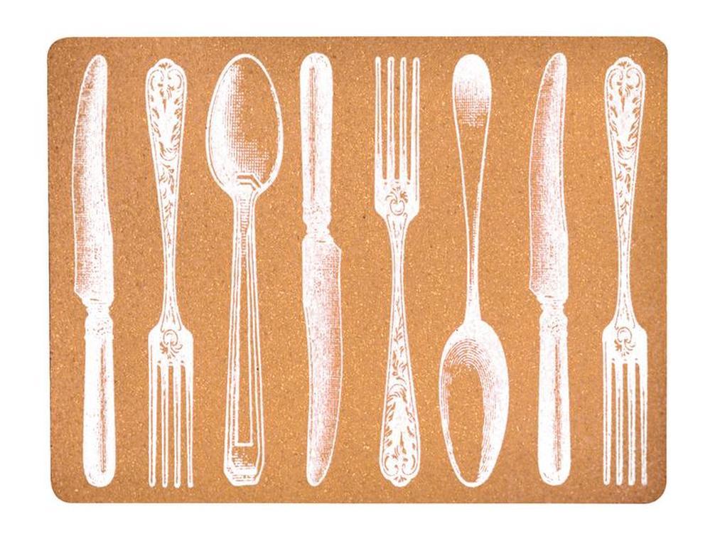 Elegantné prestieranie s dekorom príborov je vhodné na každý jedálenský stôl. Prestieranie "Príbory" je vyrobené z korku. Rozmery 30 x 40 cm. Farba hnedá s bielou alebo červenou potlačou príborov.
