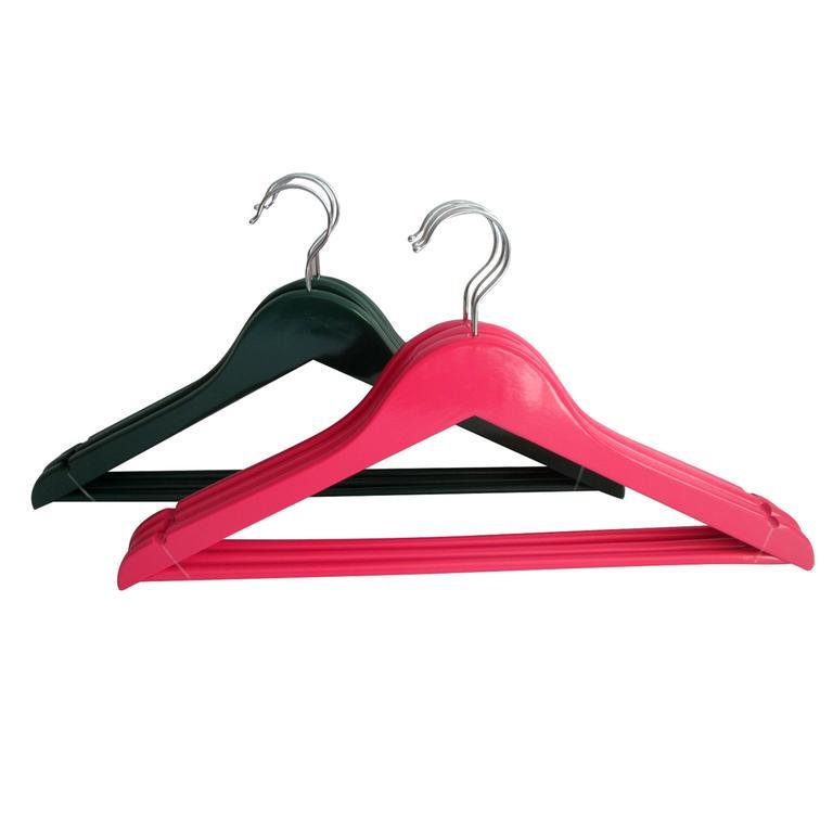 Farebné drevené šatňové ramienko - súprava 3 ks. Je vynikajúcim pomocníkom pri skladovaní oblečenia v skriniach a šatníkoch všetkých domácností. Ramienka sú vybavené kovovým otočným háčikom. Rozmery - 44,5 x 23 cm. Assort farieb.