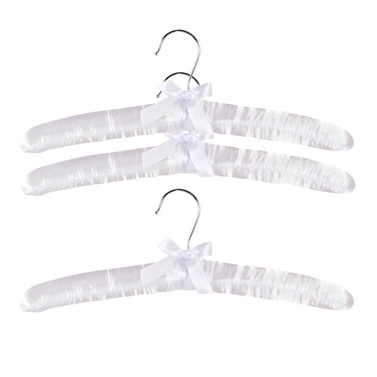 Ramienko drevo / satén - sada 3 ks. Obľúbené, luxusné šatníkové ramienko polstrované saténom, pre tie najvzácnejšie šaty a drahé oblečenie. Ramienko je precízne polstrované jemným saténom, hojne sa využíva v prestížnych svadobných salónoch a butikoch. Odporúčame pre najvzácnejšie a najobľúbenejšie kúsky vo vašom šatníku. Rozmery 38 x 14 cm. Farba biela.