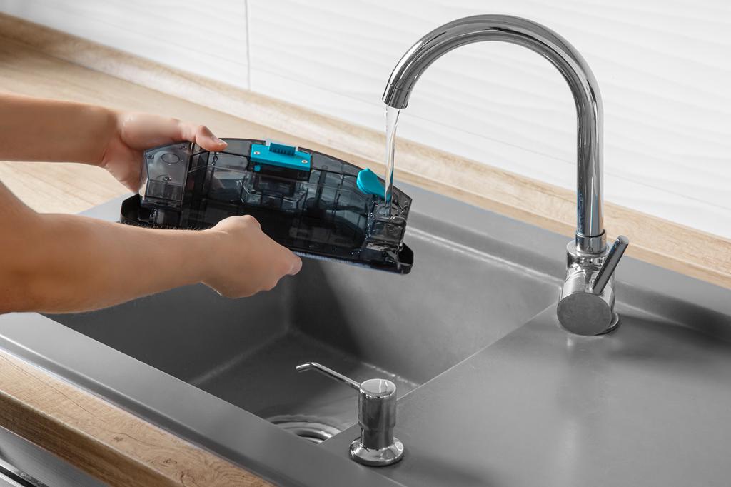 Systém dvoch rotačných kief a centrálneho vysávača je ideálny na vysávanie kobercov i tvrdých podláh. Bočné rotačné kefy si poradia s každým rohom. Vysávač je vybavený li-lon batériou, ktorá poskytuje energiu až na 120 minút prevádzky. Nabíjateľnú stanicu môžete upevniť na stenu alebo nábytok a vysávač ju automaticky vyhľadá v prípade ukončenia programu alebo slabej batérie. Možnosť mopovania dovedie upratovanie k dokonalosti. Súčasťou balenia je handra na umývanie a nádoba na vodu.