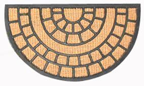 Polookrúhla rohožka z kokosových vlákien a gumy. Praktická rohožka pred dvere na čistenie obuvi. Pletené kokosové vlákna. Vďaka gumovej spodnej časti je rohožka pri čistení obuvi stabilná a nešmýka sa po podlahe. Jednoduché čistenie vysávaním alebo vyklepaním. Prírodná hnedá farba. Rozmery rohožky 40 x 70 cm.