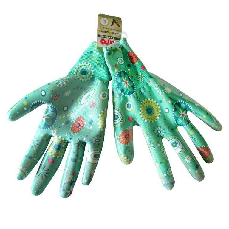 Praktické pracovné rukavice potiahnuté priehľadným nitrilom. Oceníte ich pri domácich a záhradníckych prácach. Čistenie rukavíc vykonávajte len mokrou handričkou. Veľkosť L. Farba zelená.