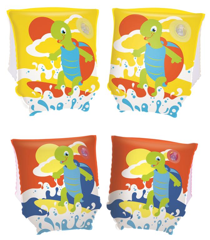 Nafukovacie rukávy s motívom "korytnačka". Rozmery 23 x 15 cm. Deti si užijú skvelú zábavu pri vodných hrách a zároveň budú pri plávaní v bezpečí. Assort farieb.
