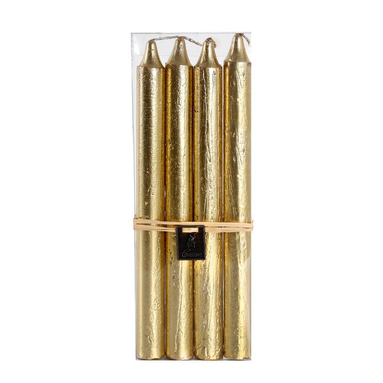 Elegantný štíhly tvar zaručí, že výsledok bude vždy dokonalý. Sviečka navodí vo vašom domove príjemnú atmosféru. Vhodná na vytváranie vianočných, veľkonočných, ale aj iných dekorácií. Veľkosť sviečky je 24 cm, farba zlatá.