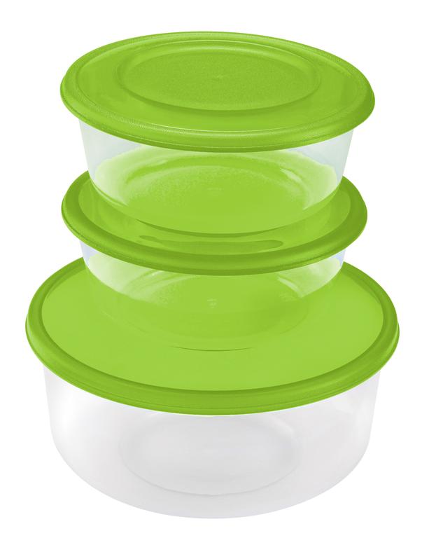 Sada 3 ks okrúhlych plastových dóz značky Heidrun je vhodná na uchovávanie potravín. Dózy možno tiež použiť ako desiatový box. Sú vhodné do chladničky, mrazničky, mikrovlnnej rúry aj do umývačky riadu. Rozmery jednotlivých dóz - veľká: priemer 18 cm, objem 1, 7 l; dve menšie majú priemer 14 cm, objem 0,9 l.