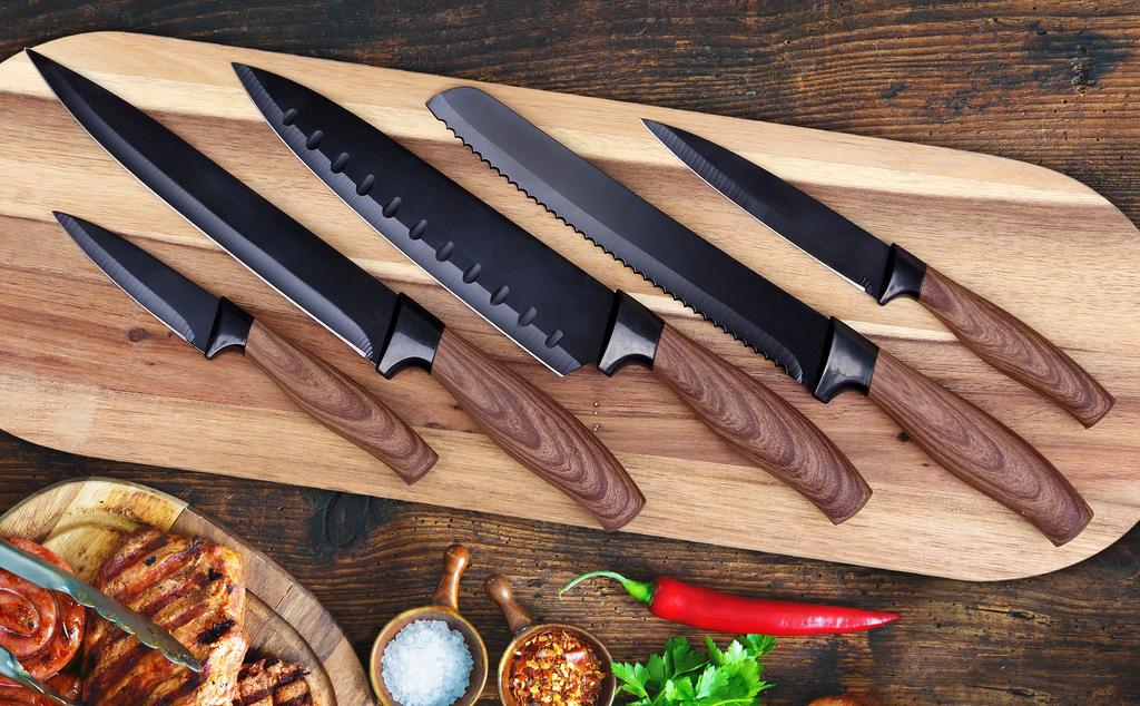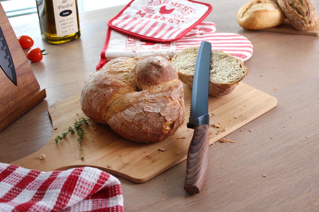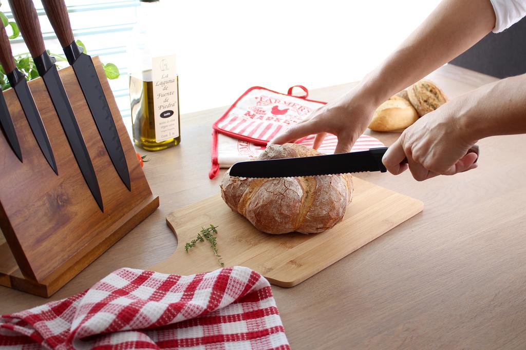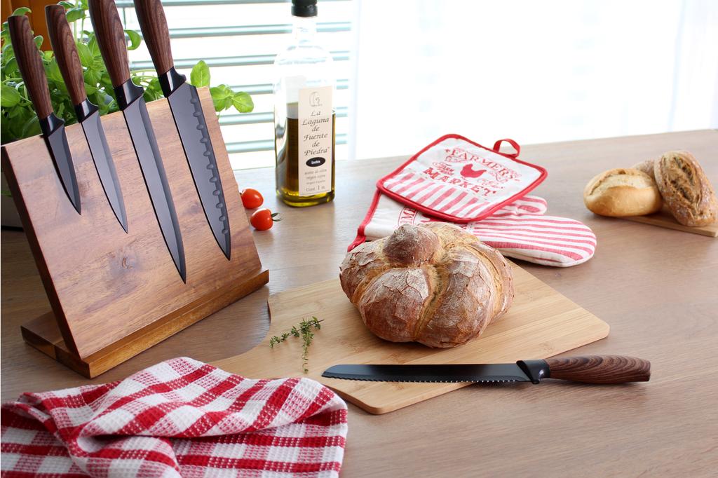 Sada nožov PROVENCE Exclusive obsahuje 5 ks najpoužívanejších nožov. Nože majú ergonomickú rukoväť s imitáciou dreva, ostrú čepeľ s nepriľnavým povrchom. Sú vysoko odolné a ľahko sa čistia. Sada obsahuje 5 ks nožov: kuchársky nôž: široká, špicatá čepeľ určená na sekanie, krájanie na kocky či plátky a na drvenie, nôž na chlieb: zúbkovaná alebo zvlnená čepeľ, ktorá si ľahko poradí s tvrdou kôrkou i mäkkou striedkou, porcovací nôž: úzky nôž s dlhou čepeľou a ostrou špičkou určený na krájanie a porcovanie mäsa , univerzálny nôž: kvalitný viacúčelový nôž vhodný na krájanie a orezávanie mäsa či veľkých kusov zeleniny, lúpací nôž: malý špicatý nôž na ovocie a zeleninu.