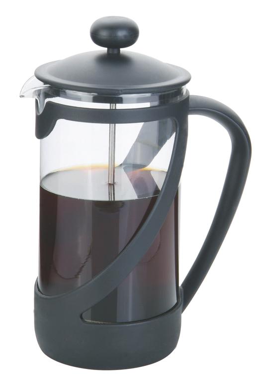 Návod na prípravu. Vyberte viečko s filtrom a sklenenú kanvicu zahrejte vypláchnutím horúcou vodou. Nasypte požadované množstvo čaju či kávy (odporúča sa hrubo namletá, pretože jemná káva by mohla upchať filter). Nalejte do kanvice horúcu vodu (nie vriacu), riadne premiešajte a nechajte niekoľko minút odstáť. Nasaďte viečko s filtrom a mierne stlačte, nie úplne na dno. Nechajte ešte lúhovat. Potom pomaly dotlačujte rukoväťou filter až na dno nádoby. Káva či čaj sú pripravené na servírovanie. Pri nalievaní nikdy neposúvajte filter hore, ale až do vyprázdnenia ponechajte stlačený filter na dne nádoby. Farba - číra, čierna. Rozmery 10 x 23 cm.