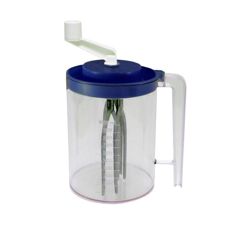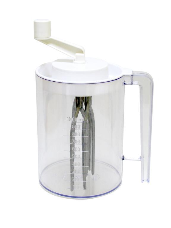 Ručný šľahač vhodný na vyšľahanie rôznych potravín, napr, cesta, smotany a pod. Je ľahko použiteľný bez elektriny. Rukoväť padne krásne do ruky a umožňuje ľahké uchopenie šľahača. Materiál - kov, plast. Objem šľahača je 1 l. Rozmery 11,5 x 15,5 cm, farebné prevedenie: biela, modrá, zelená.
