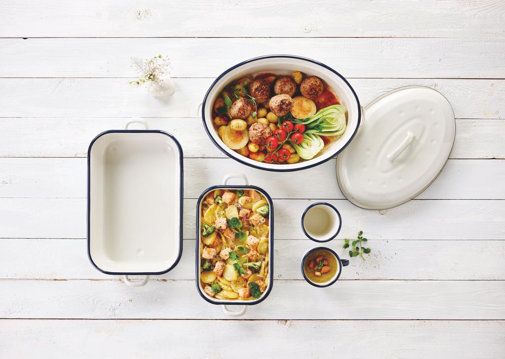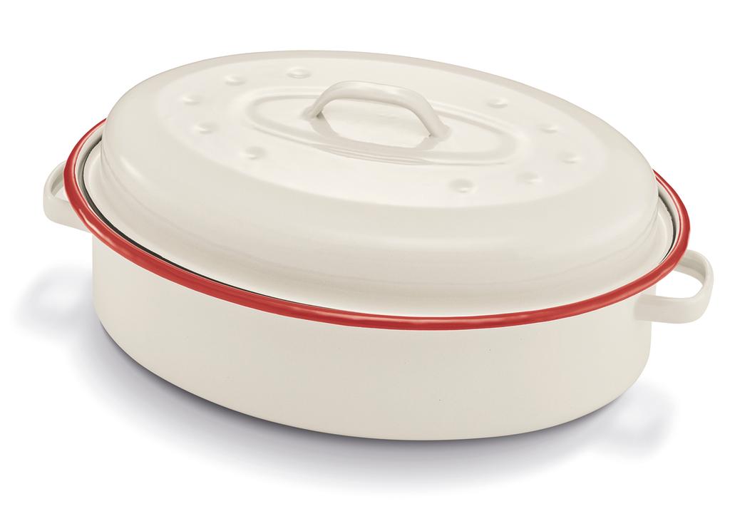 Smaltovaný pekáč s pokrievkou KITCHEN FUN o veľkosti 34 cm. Rovnomerná tepelná vodivosť a optimálny cirkulácie pary v pekáči zaistí, že si vaše pokrmy udrží všetky chute a vône. Využijete ho pri pečení mäsa, buchiet, aj najrôznejších zapekaných dobrôt. V béžovo-červenom pekáči môžete piecť až do 250 ° C.