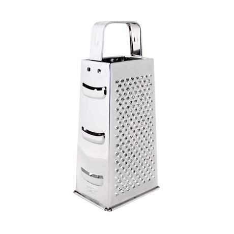 Štvorhranné strúhadlo so základnými funkciami strúhania a pevným držadlom. Možno strúhať na jemno, na hrubo a na plátky. Materiál - nerez. Rozmery - 9 x 20 cm.