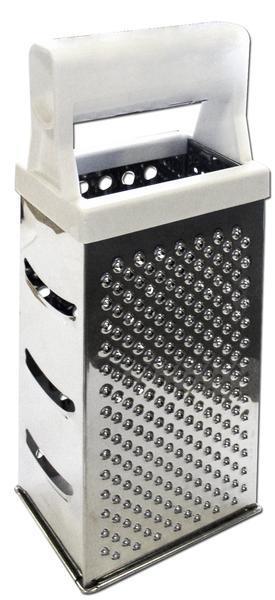 Štvorhranné strúhadlo so základnými funkciami strúhania a pevným držadlom. Možno strúhať na jemno, hrubo a na plátky. Materiál plech, plast. Rozmery - 10 x 24,5 cm.
