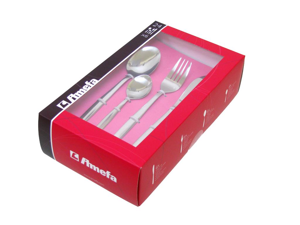 Sada 24 ks príborov Florentino je vyrobená z prvotriednej nehrdzavejúcej ocele 18/0. Kazetové balenie obsahuje 6 jedálenských nožov, 6 vidličiek, 6 polievkových lyžíc a 6 kávových lyžičiek. Kvalitný príbor na každodenné použitie. Vhodné do umývačky riadu. Rozmery výrobkov: 13,9 x 2,8 cm; 19,4 x 3,8 cm; 20,4 x 1,9 cm; 19,3 x 2,4 cm.
