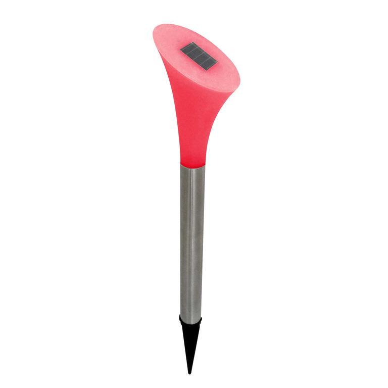 Záhradné plastové solárne Led svietidlo v tvare kvetu - kaly. Solárny panel premieňa slnečné svetlo na elektrickú energiu a zhromažďuje ju počas dňa. Svetelný senzor spúšťa svetlo automaticky v noci. Svetelným zdrojom je jasná LED žiarovka s vysokou svetelnou intenzitou až po dobu 8 hodín pri úplnom nabití počas dňa. Súčasťou balenia je 1 ks gombíkovej batérie 1.2V 40 mAh. Materiál plast, rozmery 7 x 38 cm. Assort farieb.
