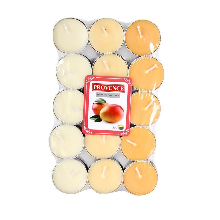 Nezabudnite, prosím, dbať na bezpečnosť a držte sa na sviečke uvedených bezpečnostných piktogramov. Vôňa mango. Sada 30 ks.
