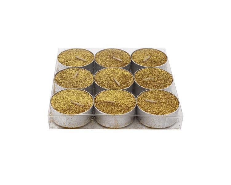 Farba zlatá, trblietavý dizajn. Sada 9 ks.