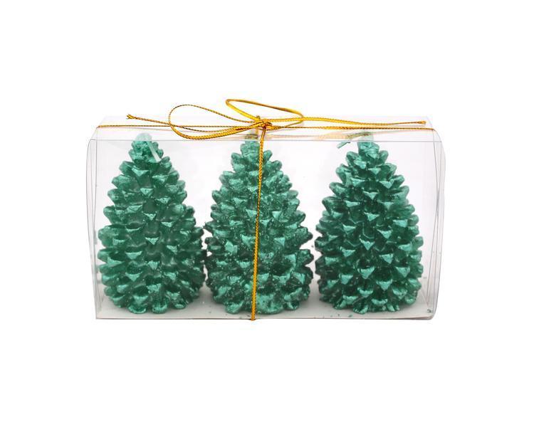 Sada 3 ks vianočných sviečok v tvare šišky. Hodia sa na každý vianočný stôl, kde navodia tú pravú sviatočnú atmosféru. Materiál - parafín. Farba zelená.