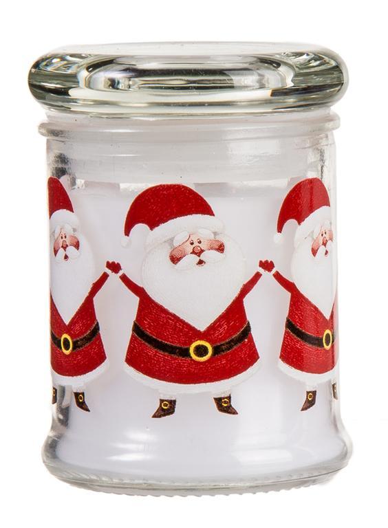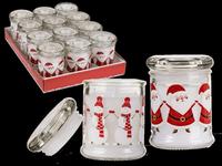 Sviečka v skle s viečkom. Táto sviečka navodí tú správnu vianočnú atmosféru. Vhodná tiež ako darček. Rozmery 8 x 6 cm. Assort motívov - Santa Claus alebo snehuliaci. Farba červeno-biela.