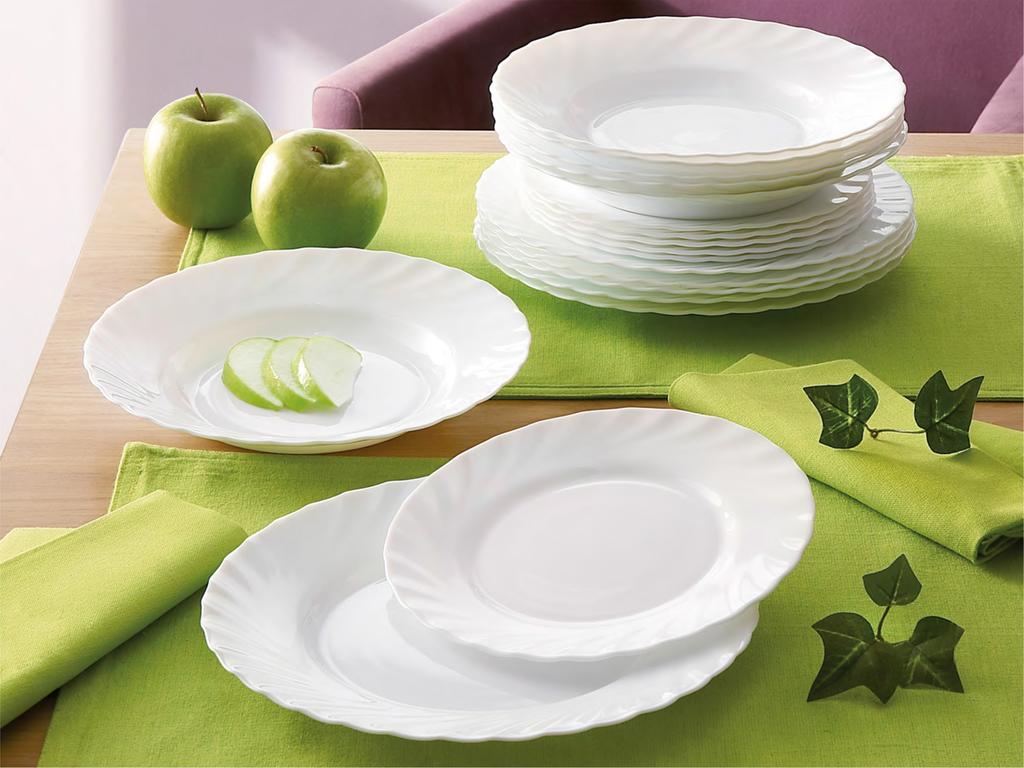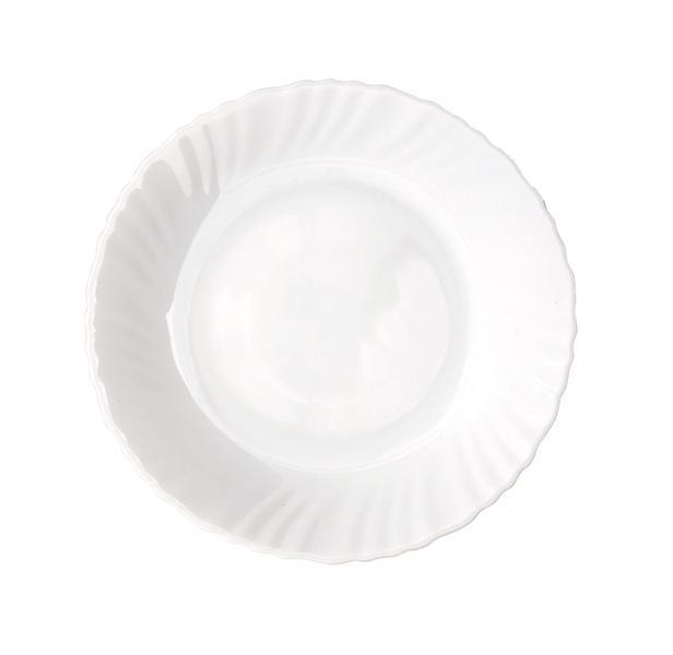 Dezertný tanier TITAN s priemerom 19 cm z opálového skla. Materiál je odolnejší ako porcelán, neodšťipuje sa, je čisto biely a navyše veľmi ľahký. Je vhodný do umývačky riadu aj mikrovlnnej rúry.