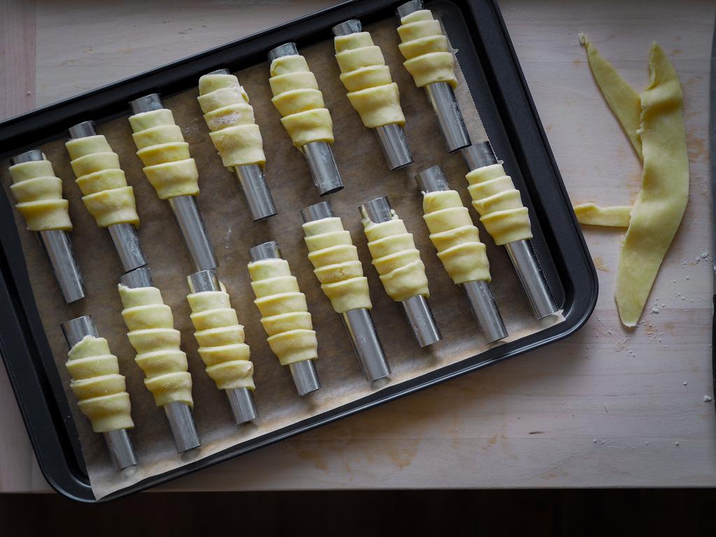 Trubičky na výrobu šamrolí sú vyrobené z pocínovaného plechu. Pustite sa do prípravy domácich šamrolí alebo trdelníka. Pripravené cesto namotajte na trubičky pomazané olejom alebo tukom, potom ich rozložte na plech vyložený papierom na pečenie. Balení obsahuje 5 ks. Dĺžka trubičiek 13,5 cm.