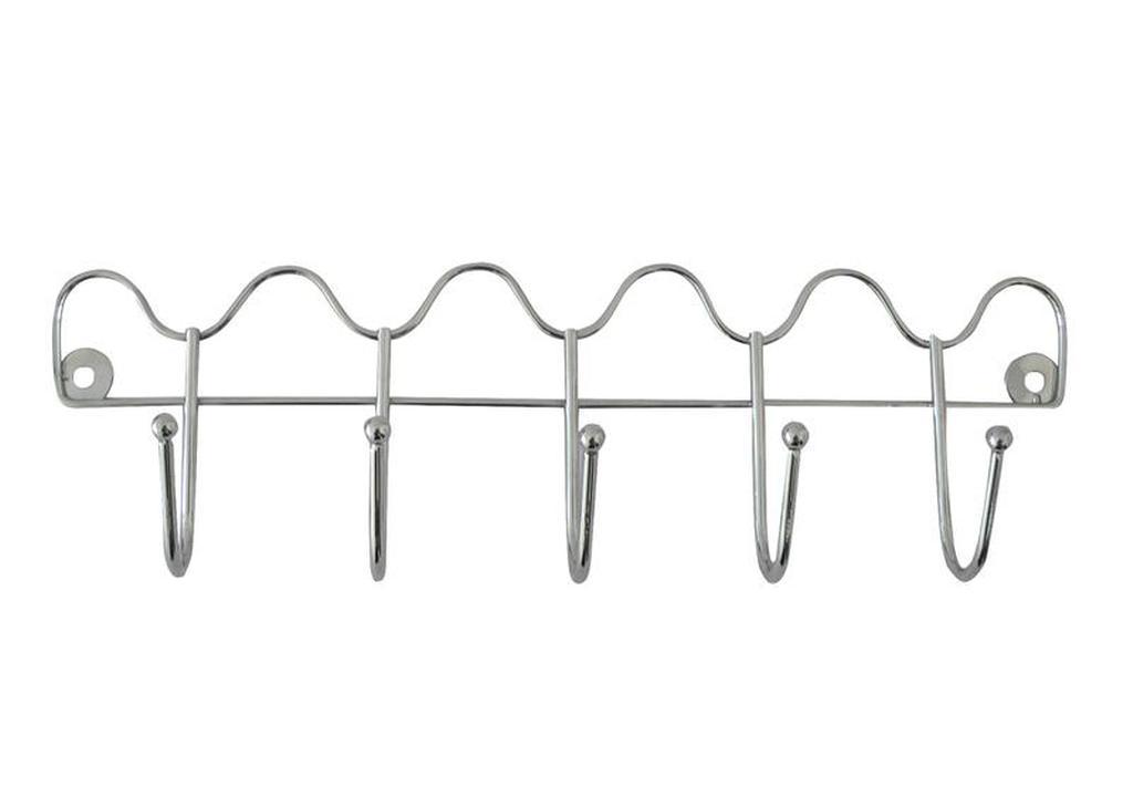 Tento vešiak vám veľmi dobre poslúži v predsieni či inej izbe. Má päť háčikov, vyrobený z pochrómovaného kovu. Rozmery 34,5 x 10 cm.